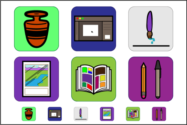 Once the digital draft was compiled, I went and showed my designs to peers to get some feedback. I wanted to know if what I had been doing was one- keeping to the prescribed parameters of the project, and two- quickly conveyed the art media it was meant to portray. All six meet the first point, but my ceramics icon, unfortunately, failed on the second. It was my personal favorite icon that I had made, but it was too obscure for those who aren’t to familiar with how a stein is made. I had strayed to far from the quintessential object for the topic. And that is perfectly okay! This is still a draft, so reworking a design is part of the whole process, and it is expected. So in proper fashion, I went back to my sketches and reviewed them to find a more suitable design to meet the challenge of passing the second point of getting feedback.