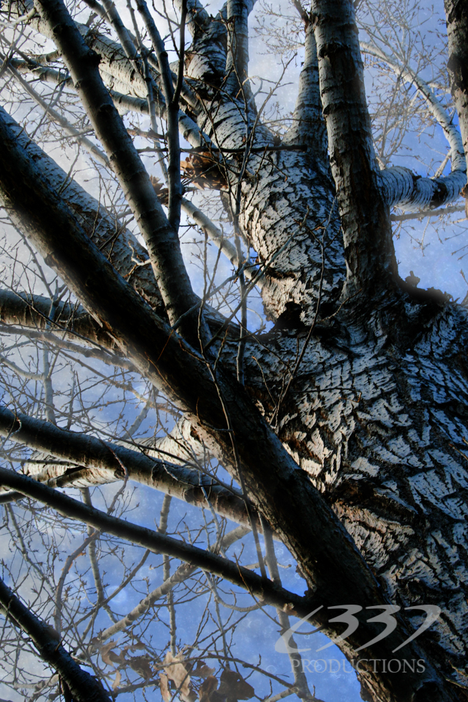 went in and laid the two images on top of the tree, angled them to match the direction of the tree trunk, and then lowered the opacity of the two, making them almost completely transparent. I then applied a mask on the trunk and major branches to make them pop a bit more from the background. I was just experimenting, but let me know what you thought, and as always, any tips for improvement are always welcome!