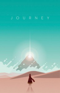 Journey is an indie videogame that was produced for the Playstation 3 in 2012. The objective is to go on a journey as the robed character featured on the poster, traveling from the dunes to a far distant mountain. Along the way, discovering new and exciting environments that are beautifully crafted, solving puzzles, all with in a unique art style. Journey won several “Game of the Year” awards and other nominations, and came to be hailed as one of the greatest games of all time.